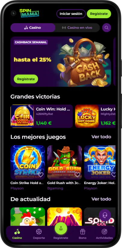 En la sección de juegos de spinmama casino encontrarás un catálogo organizado por categorías, proveedores y popularidad. La parte superior destaca los títulos más jugados en las últimas semanas, como Coin Strike Hold and Win, Big Bass Splash, Gold Rush with Johnny Cash o Book of Ra Deluxe. También reservamos un espacio para “Spinmama Originales”, donde incluimos títulos exclusivos como Squid Gamebler o el slot temático spinmama chicken road, pensado para quienes buscan algo distinto a las franquicias habituales. Nuestro objetivo es que cualquier tipo de jugador pueda encontrar un estilo de juego que encaje con su ritmo: apuestas bajas, rondas rápidas, funciones con compra de bonus o mesas clásicas con reglas estándar.